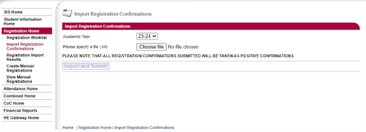 - Go to the Registration Home page and select Import Registration Confirmations.