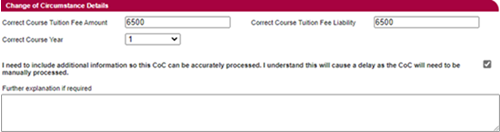 If there are any further changes to the dates or duration of the course extension, you need to submit another Fee CoC. This includes if the extension date is moved forward or is no longer needed.