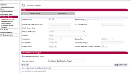 The Combined Confirmation Report file format is the same as the Registration Confirmation Export file. You can find a detailed breakdown of the file format in the Attendance and Student Information Import and Export Files Technical Specification. If you need a copy, please email hep_services@slc.co.uk.