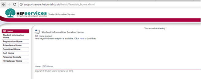 You will receive a new Negative Balance Report notification on the SIS Home page with an option to download the report. This notification will only appear if a new negative report for the current week has not already been downloaded. The message will not appear the next time you sign in.