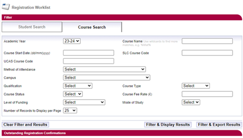 The exported file will only include the details of the students who came up in your search and whose registration you need to confirm.